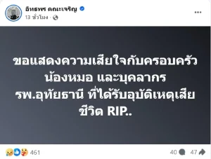 จากอุบัติเหตุดังกล่าว หนึ่งในผู้เสียชีวิตคือ “หมอน้ำตาล” โรงพยาบาลอุทัยธานี ทางเพื่อนร่วมอาชีพก็ออกมาโพสต์แสดงความอาลัยจำนวนมาก อาทิ ผู้ใช้งานเฟซบุ๊ก Som O CanDoระบุว่า…